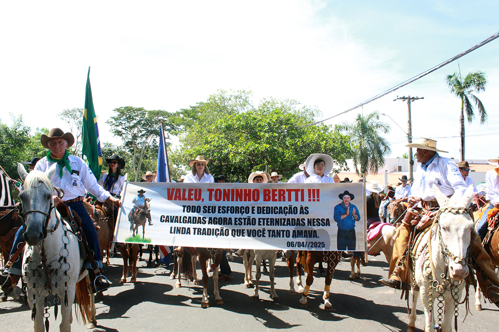 Homenagem. Em 2025 o desfile de cavaleiros ganhou o nome de Cavalgada “Toninho Berti”. Por meio do Projeto de Lei nº 10/2025, o vereador Fábio Kazuto Matsumura propôs dar o nome de “Toninho Bertti” à cavalgada anual realizada no mês de abril. A propositura foi aprovada por unanimidade na 1813ª Sessão Ordinária da Câmara Municipal.