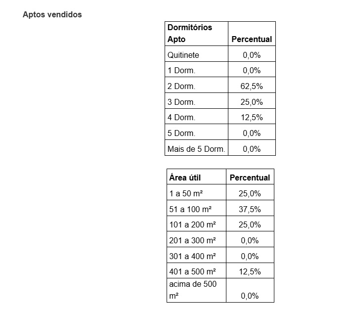 A maioria dos apartamentos era de 2 dormitórios com até 50 m² de área útil.