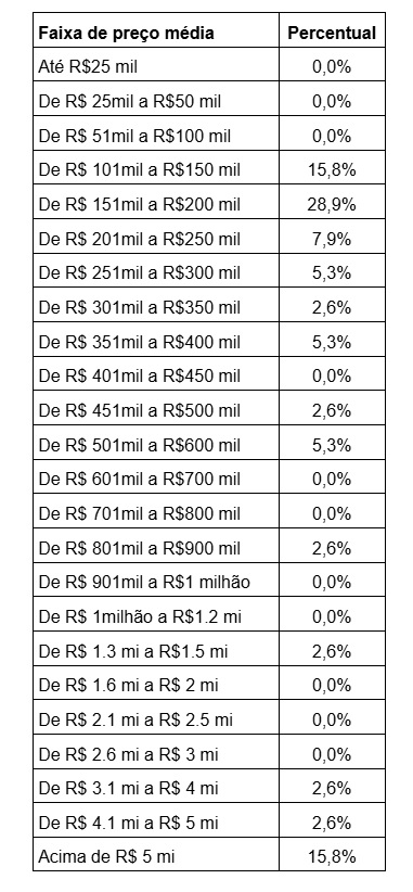 A média de valores das casas e apartamentos vendidos no período ficou em até R$ 200 mil.
