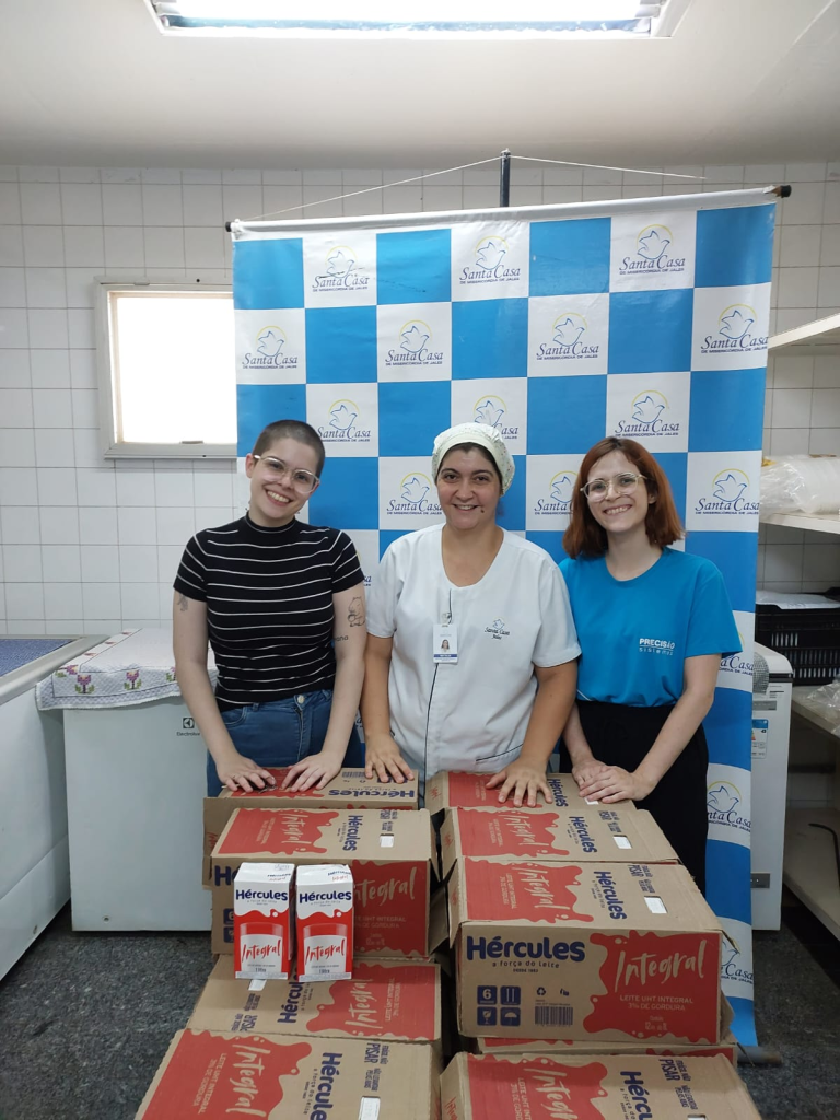 A Santa Casa de Misericórdia de Jales recebeu a doação de 378 litros de leite referente a campanha Gincana do Amor da empresa Precisão Sistemas, a doação foi entregue pelas colaboradoras Juliana e Gabriela que foram recepcionadas pela responsável da cozinha, Natalia. A ação que já é tradição na Precisão, tem o objetivo de arrecadar alimentos para instituições de saúde da cidade como a Santa Casa de Jales e o HA, desta maneira, os colabores se dividiram em grupos para a arrecadação dos alimentos de forma física ou por valores para serem adquiridos.
